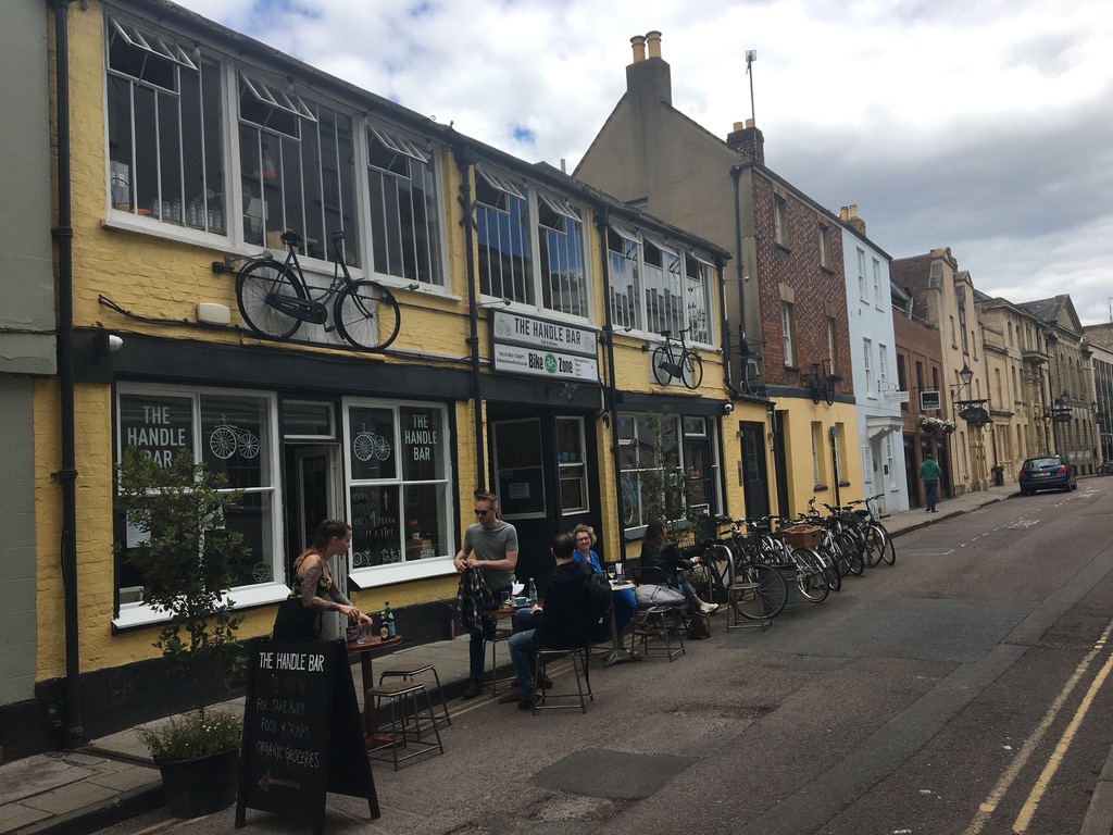 Which was spent in a very leisurely way outside the The Handle Bar café. The adjacent bike shop may have been closed, but the café was very much open for business with a good menu selection that allowed me to have a full English a little later than usual.